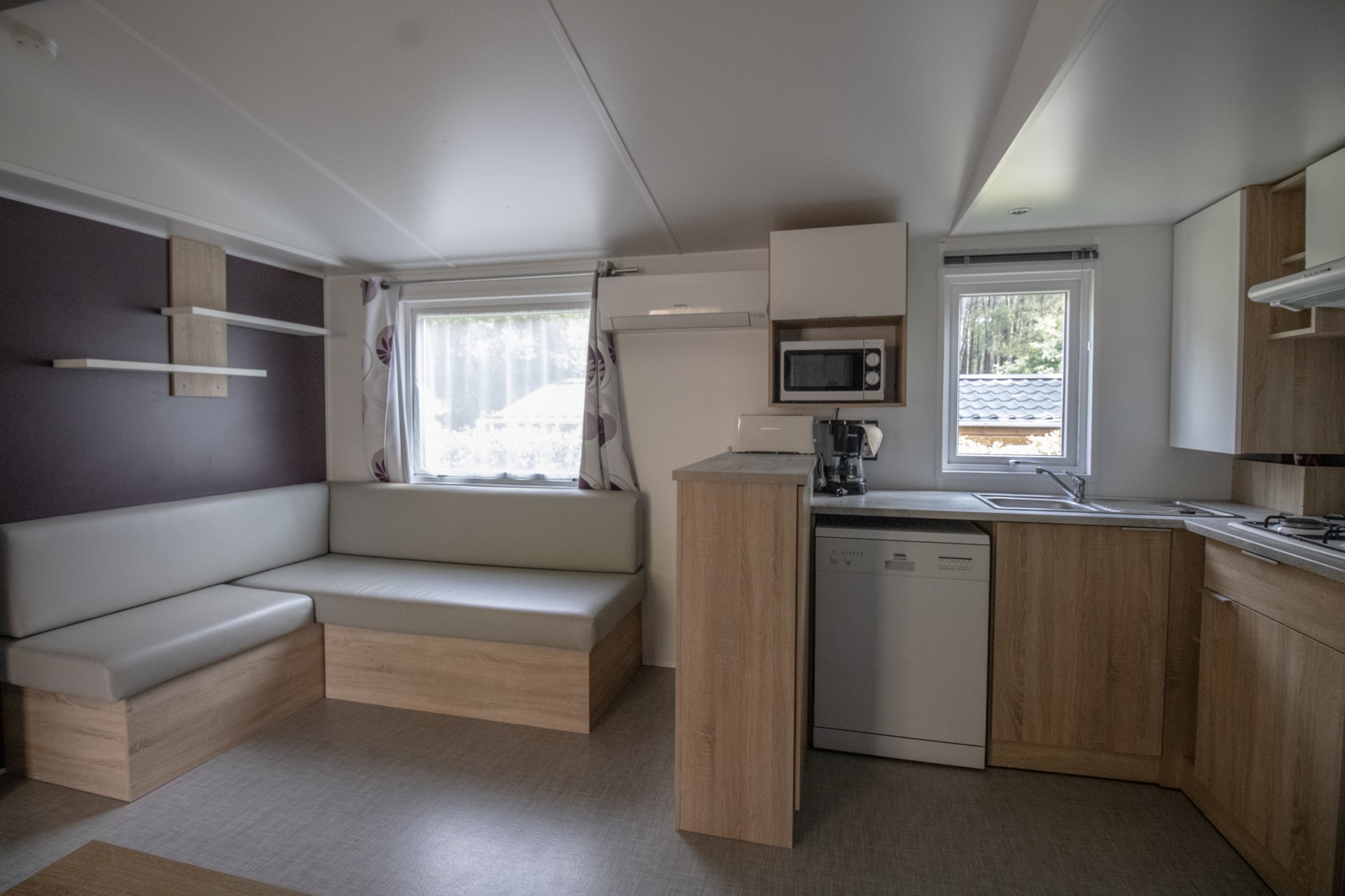 - Cuisine équipée de plaques de cuisson, d'un réfrigérateur/congélateur et d'un micro-ondes ainsi que de la vaisselle pour 6 personnes